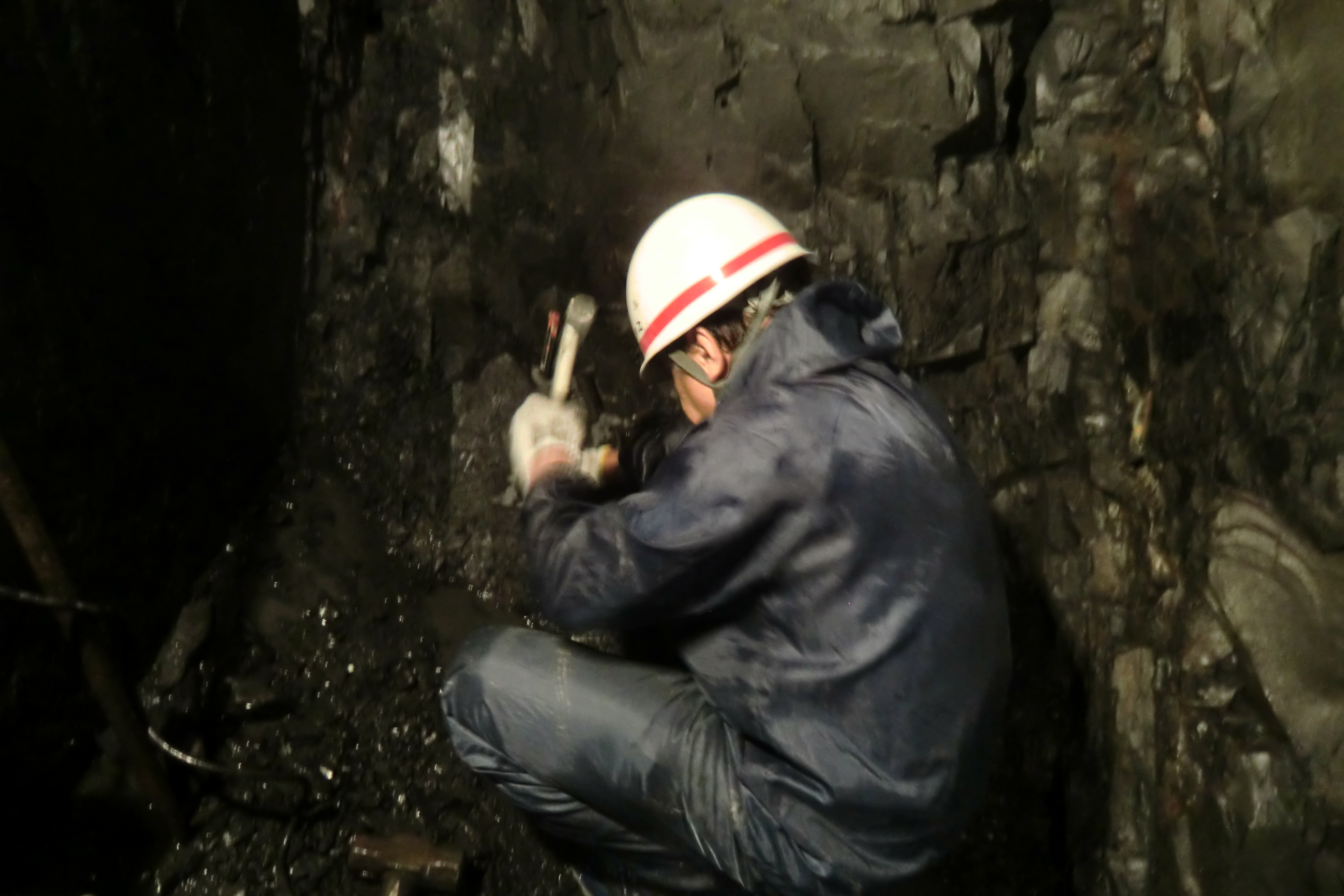 雨畑硯の原石は、雨畑川沿岸の坑道掘の、粘板岩が均等な層になっている部分から採石されます。